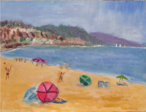 This depiction of the fun life at Dana Point Beach CA. was painted at a SOCALPAPA event . It is an oil on canvas. Come and enjoy the good life.